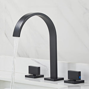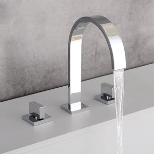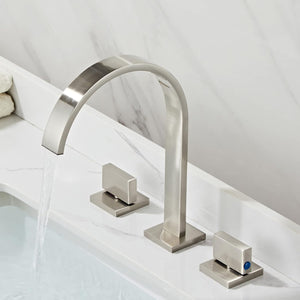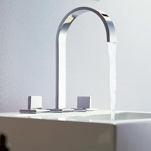 This unique widespread gooseneck faucet by the ALFI brand offers traditional installation with a sophisticated modern appearance. Available in Polished or Brushed finish and made to match or stand out from other bathroom fixtures, adding a touch of contemporary flair to any style décor.