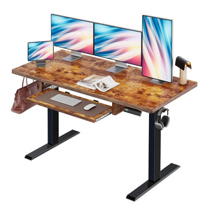 The Height Adjustable Desk with Keyboard Tray, 55 x 24 Inches Electric Standing Desk, Stand up Computer Table with Memory Preset, Modern Lift Motorized Gaming Workstation, Rustic Brown
