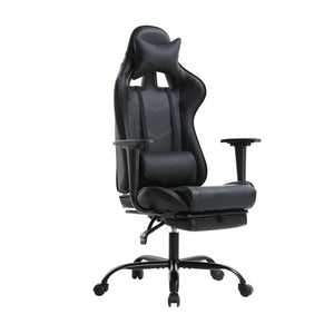 We present this new high-back gaming chair with a unique appearance and thick cushioning for maximum comfort. It serves as both a gaming chair and an office desk chair. This ergonomic gaming chair is covered in breathable premium PU leather and features freely adjustable lumbar support and a headrest pillow to protect your spine and neck.