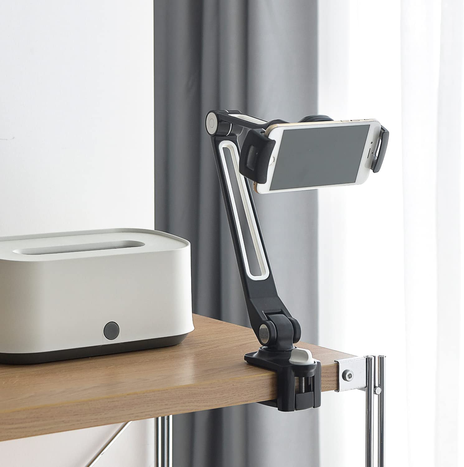 The clamp can hold the stand at the end of most desks, bed frames, and boards, and the padding will help to keep your furniture undamaged.