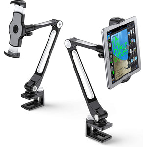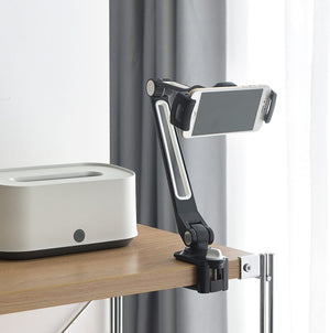 Use your tablet/phone hands-free with this tablet/phone holder that features a sturdy foldable and rotating arm stand.