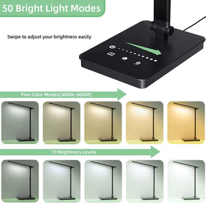 Desk Lamp 3 Modes 5 Dimmable Levels Touch USB Powered Reading Light Eye Protect with Timer Table Lamp