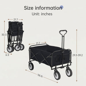 Humanized design: All utility trucks are equipped with adjustable handles that can be easily transported on multiple surfaces (road, lawn, etc.). The wagon can be folded up to a small size and can be folded into a portable bag and space-saving, or easily stored in a closet, garage, or car trunk.