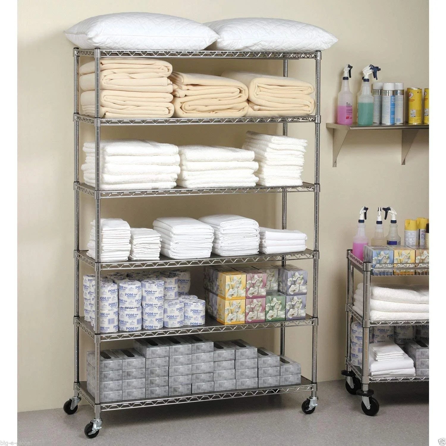 The storage shelves can hold substantial weight. The wire shelving unit features durable steel construction that resists dirt buildup and corrosion. The metal shelf is remarkably sturdy. The maximum weight capacity per shelf is 1000 lbs when the weight is evenly distributed on the levelers. The wire shelving unit is easy to assemble, with all parts packaged for convenience. This storage shelf structure is very simple; no tools are required for assembly.