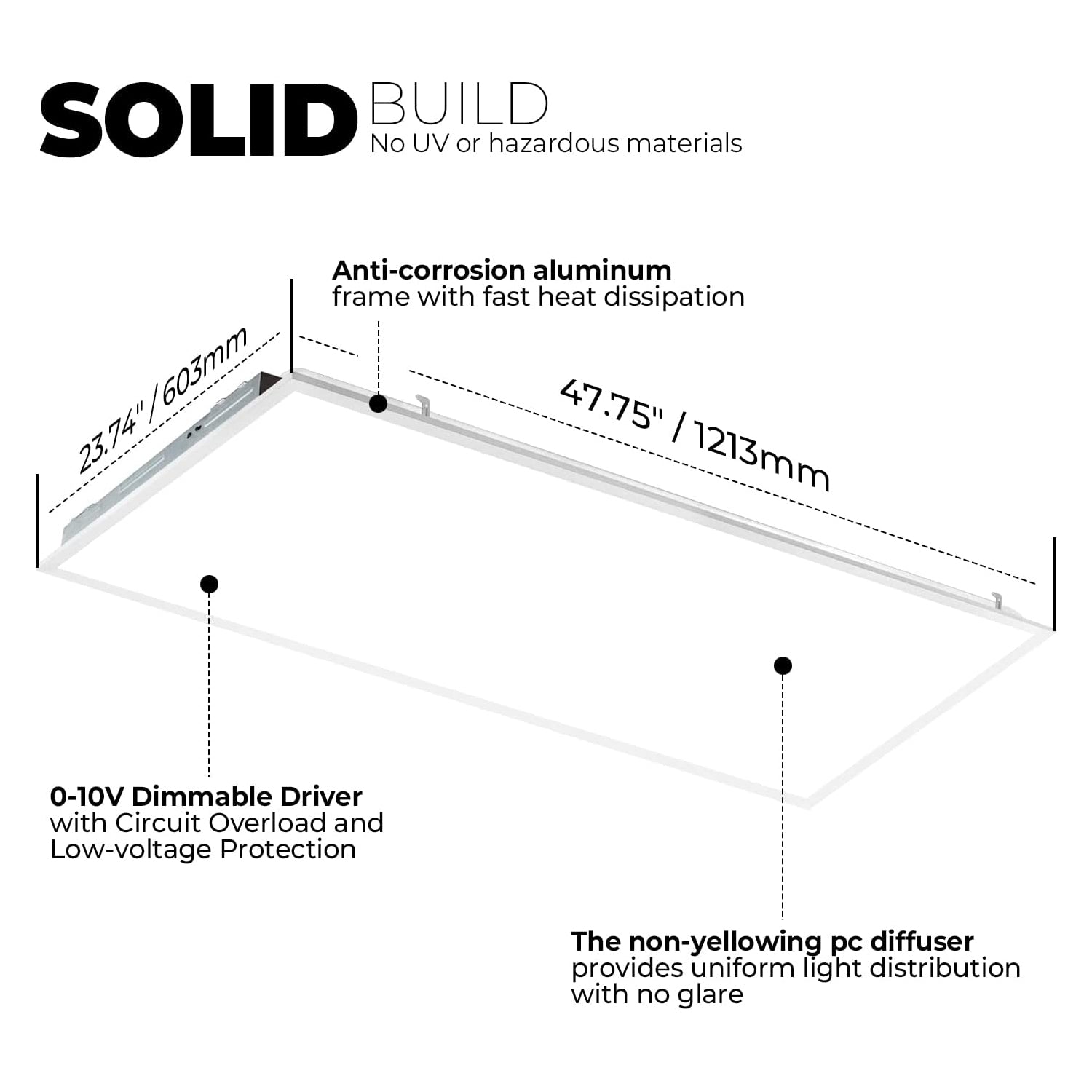 • The Iluminpro LED 2 ft. x 4 ft. LED Edge-Lit flat panel produces a gentle and uniform illumination, offering state-of-the-art energy-efficient lighting. The low-profile flat panel is constructed from high-quality aluminum and superior materials offering an enduring performance against light degradation. The LED flat panel design is easy to install making the replacement of traditional fixtures simple.