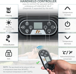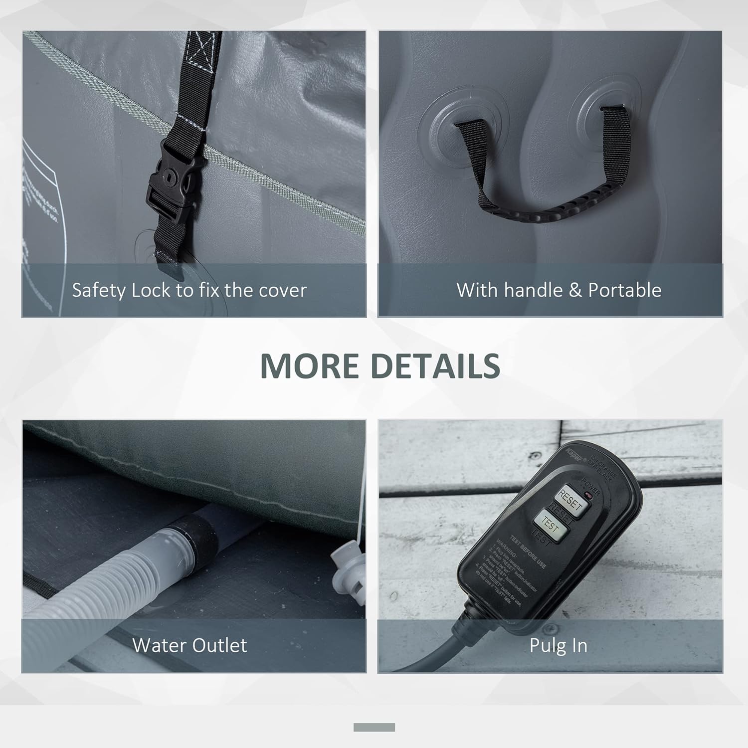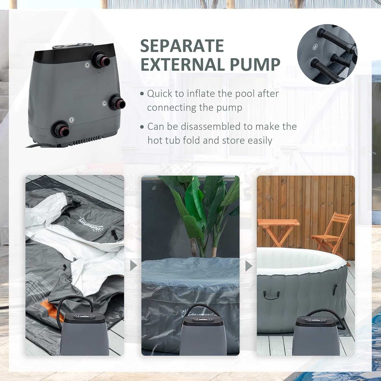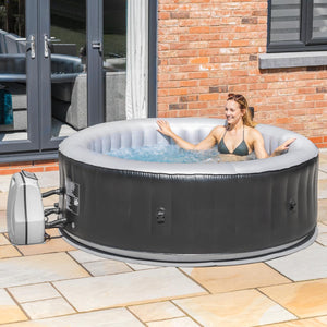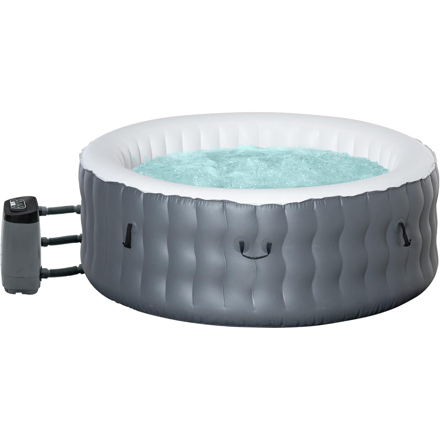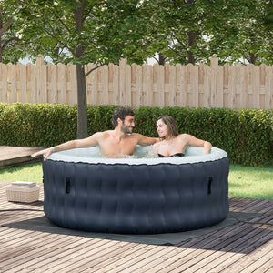 Outdoor, portable, and inflatable hot tub spa accommodates 4 people and lets you relax in style with the touch of a button.