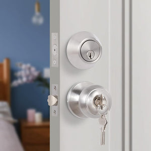• This doorknob includes three BRASS keys per set, used for exterior or interior doors